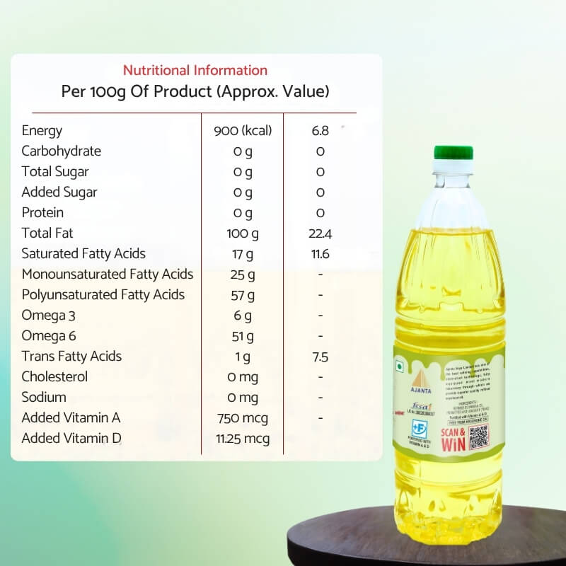 | Ingredients | Refined Soyabean Oil, Permitted Anti – Oxidant (TBHQ), Fortified with Vitamin A, D & E, Free from Argemone oil |